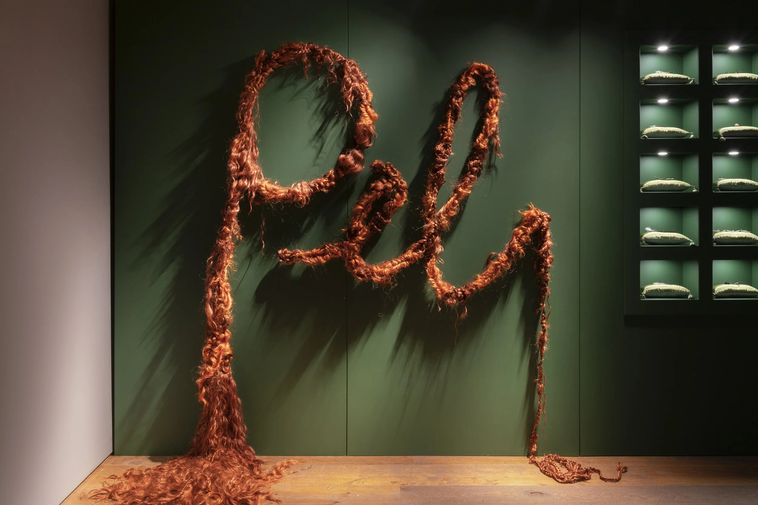 ‘For Its Sake’, which formed part of the project’s exhibition at the Malta Society of Arts in Valletta, reacted to one of the presented artefacts from the decadent movement, namely the Catalan artistic and literary journal Pèl & Ploma, the publication of which spanned the years 1899–1903. ‘For Its Sake’ presented an abundance of hair and a series of feathers.
